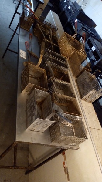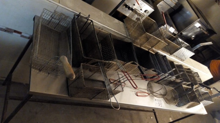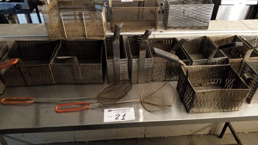 LOTE DE 19 PIEZAS. 2 ESPUMADORAS, 6 CANASTOS DE ALAMBRE PARA FREIDORA, 11 CANASTOS DE ACERO INOXIDABLE PARA CUCCIPASTA. TOTAL DE PIEZAS 19