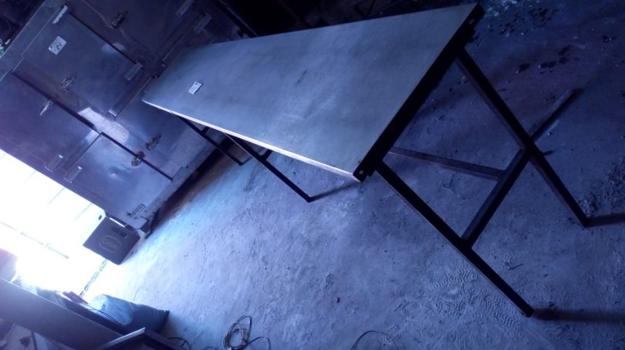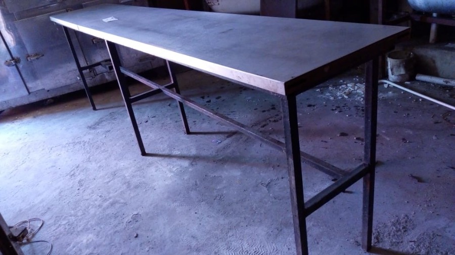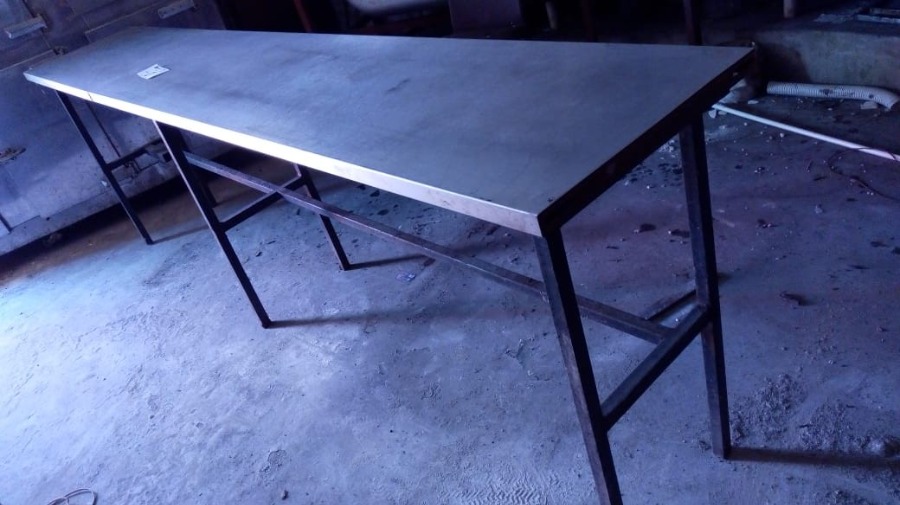 MESADA DE ACERO INOXIDABLE CON BASE ESTRUCTURAL DE HIERRO. DE MEDIDAS 3MTS×52CM×95CM ALTO.