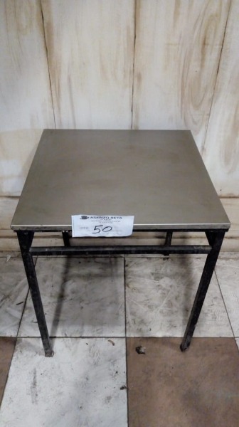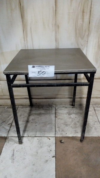 MESADA DE ACERO INOXIDABLE CON BASE ESTRUCTURAL DE HIERRO. DE MEDIDAS 76CM×76CM×90CM ALTO.