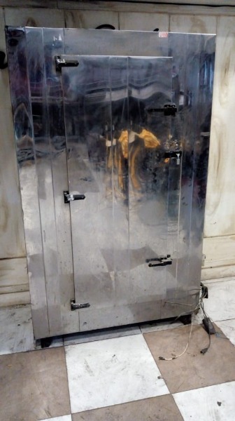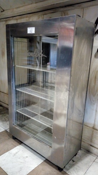 SEMICAMARA EXHIBIDORA DE ACERO INOXIDABLE, MOTOR A DISTANCIA, CON VIDRIO AL FRENTE Y EN UN COSTADO, DE MEDIDAS 1,22MTS×64CM×2MTS ALTO. (OBSERVACIONES PRENDE PERO NO ENFRÍA)