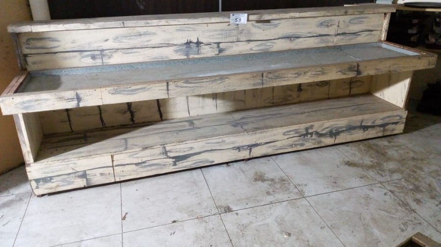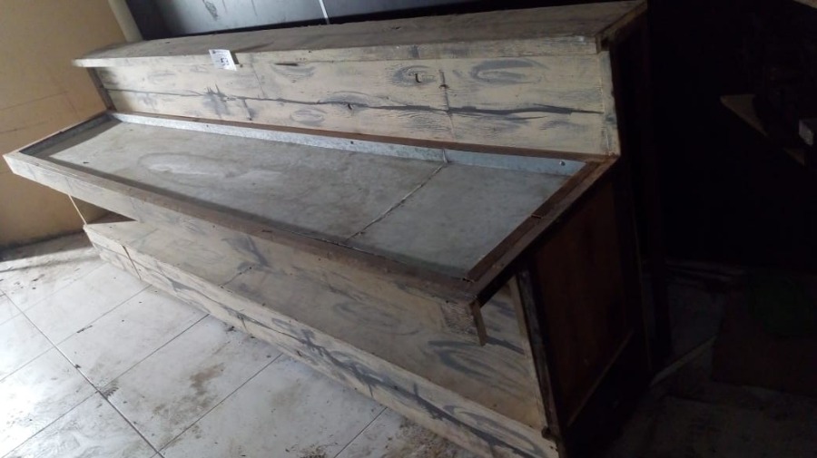 MUEBLE VAJILLERO, DE MADERA, BASE ESTRUCTURAL Y CHAPA GALVANIZADA. DE MEDIDAS 2,96MTS×75CM×1,05MTS ALTO.