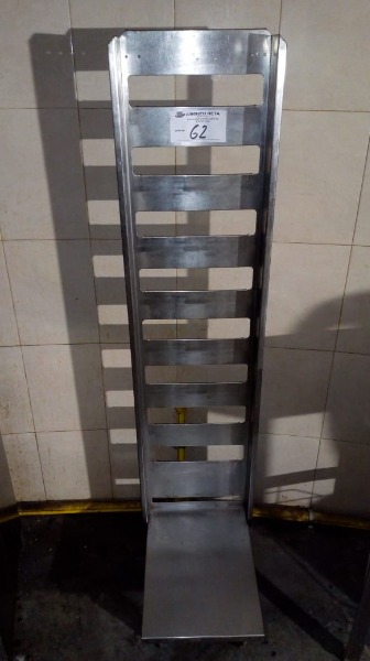 CARRO DE ACERO INOXIDABLE RODANTE PARA CANASTOS DE FREIDORA, CAPACIDAD PARA 10 CANASTOS.