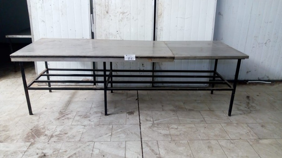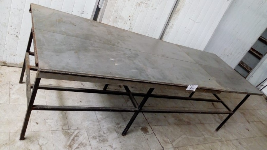 MESADA DE TRABAJO TIPO TORNO DE ACERO INOXIDABLE CON BASE ESTRUCTURAL DE MEDIDAS 2,95MTS×1,05MTS×93CM ALTO
