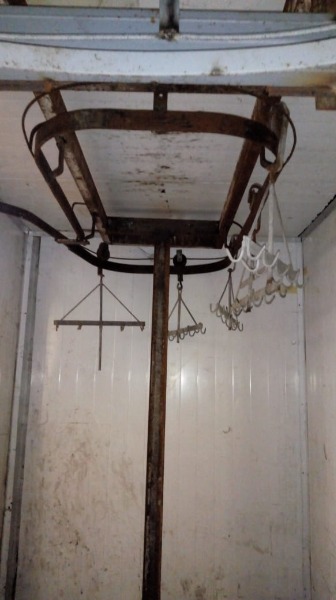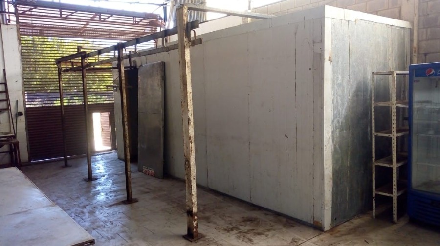 CAMARA DE FRIO, DE PANELES DE POLIURETANO DE 10CM, CON GANCHERA DE RIEL CARNICERA Y CON 7 GANCHOS CON BASE Y ESTRUCTURA DE VIGAS DOBLE T. DE MEDIDAS 6,70MTS×2,25MTS×2,80MTS ALTO (OBSERVACIONES SIN MOTOR Y SIN EVAPORADOR)