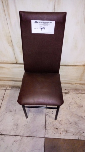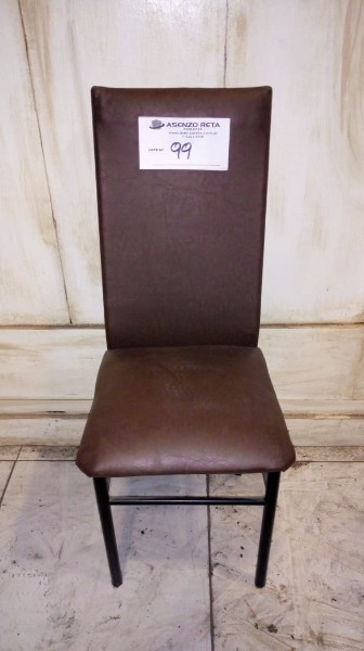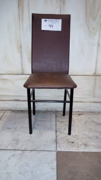 SILLA DE HIERRO, CON BASE, PATAS Y ESPALDAR DE HIERRO, CON TAPIZADO DE ECOCUERO MARRÓN EN ASIENTO Y ESPALDAR.