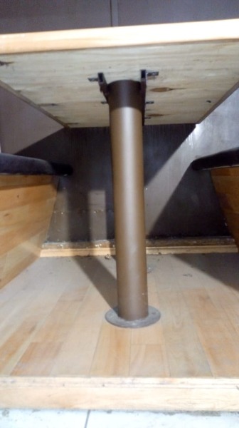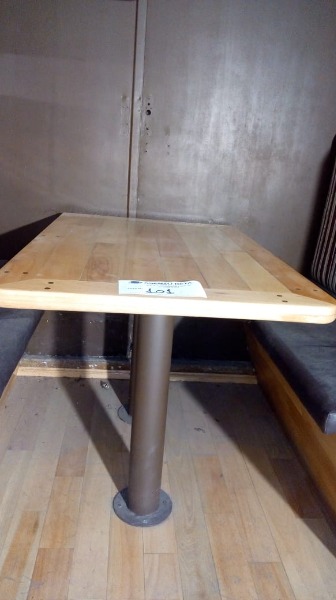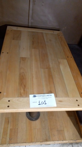 MESA DE MADERA CON DOBLE BASE CENTRAL DE HIERRO. DE MEDIDAS 1,20MTS×75CM×80CM.