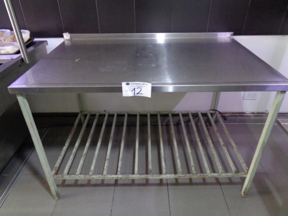 MESADA DE ACERO INOXIDABLE BASE STRUCTURAL DE HIERRO 1 ESTANTE INFERIOR DE HIERRO ZOCALO SANITARIO BORDE ANTIDERRAME MEDIDAS 1.40 MTS X 92 CM X 94 CM DE ALTURA