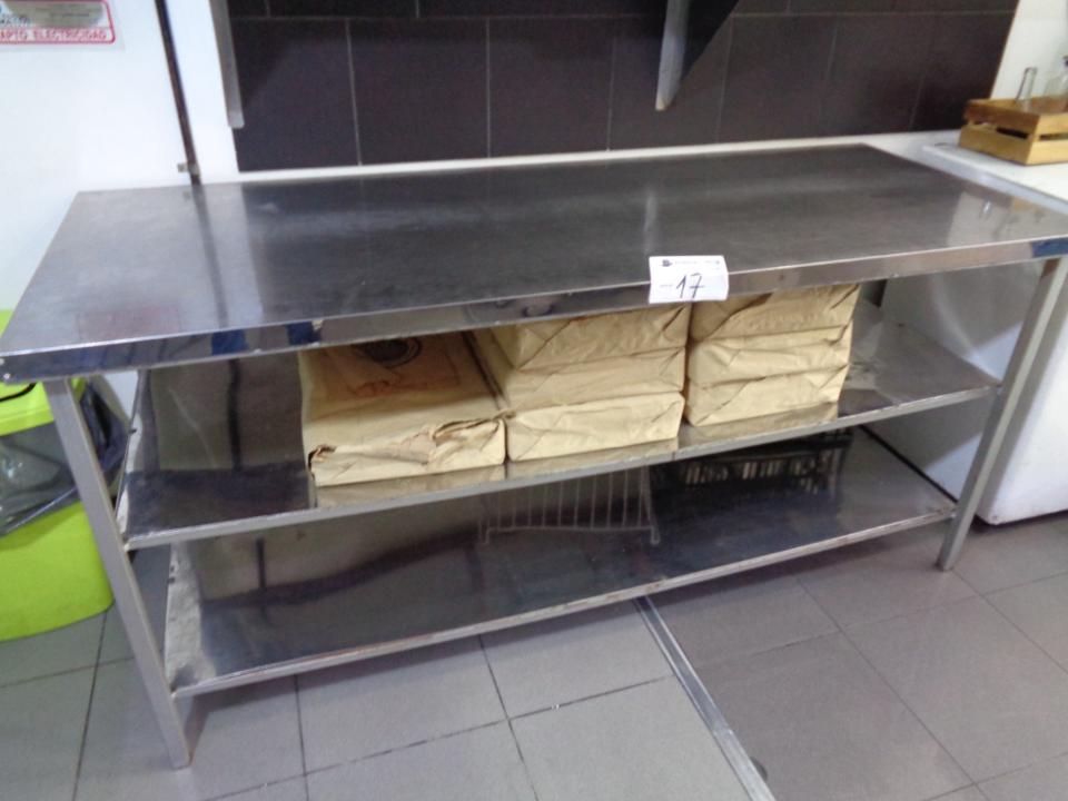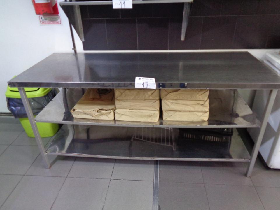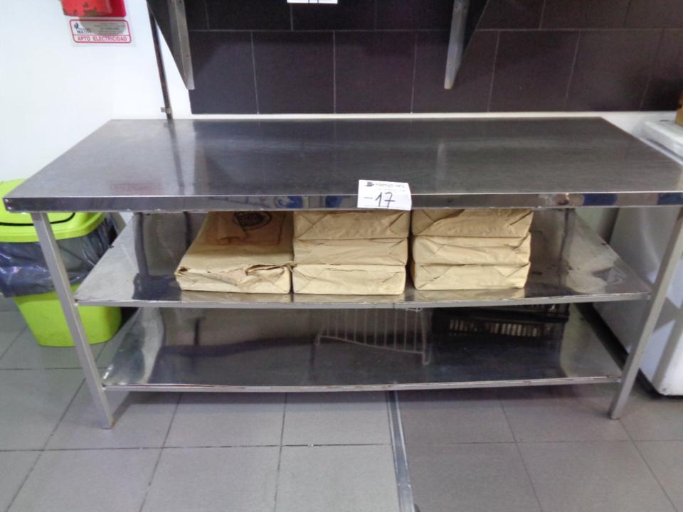 MESADA DE ACERO INOXIDABLE TIPO ISLA BASE ESTRUCTURAL DE HIERRO 2 ESTANTES DE ACERO INOXIDABLE, MEDIDAS 1.90 MTS X 70 CM X 90 CM DE ALTURA