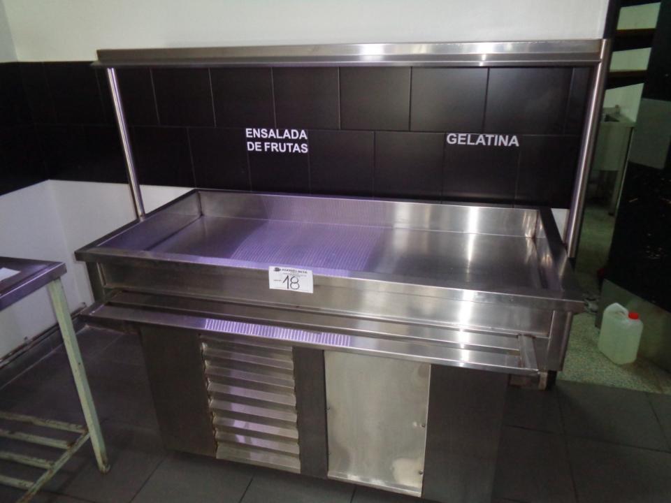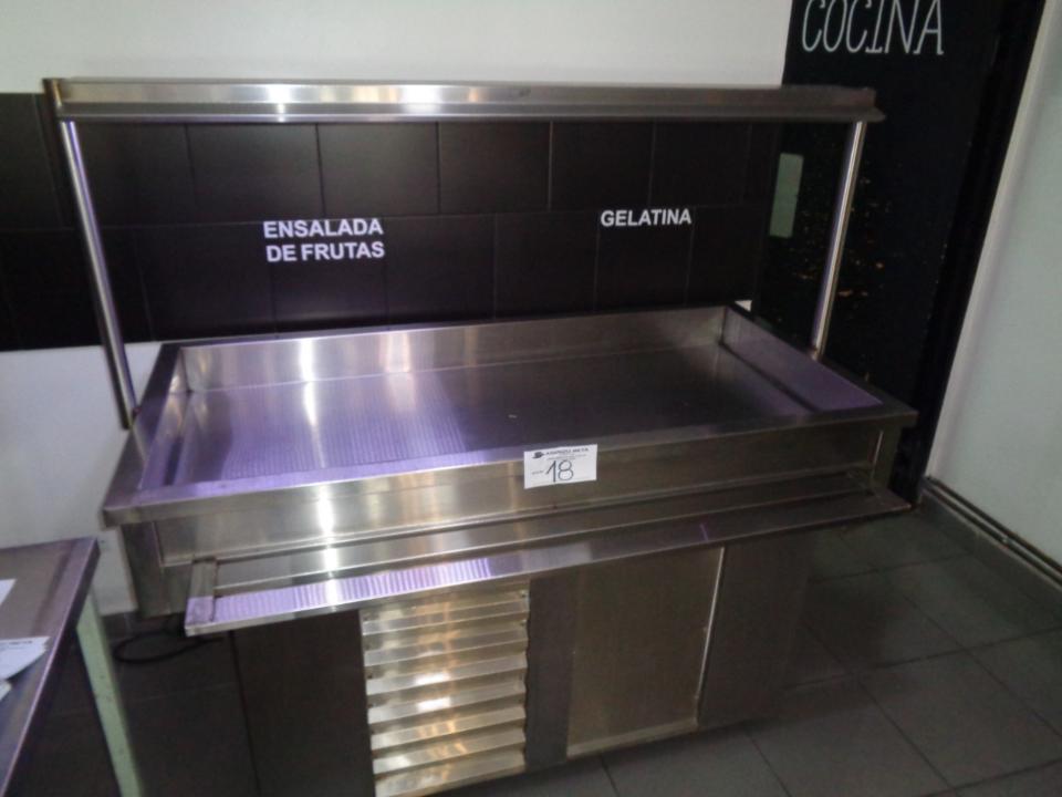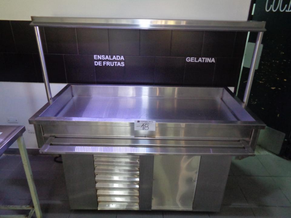 LUNCHONETTE ELECTRICO EN ACERO INOXIDABLE PARA PLATO FRIO, CON MOTOR INCORPORADO,1 ESTANTE, ALZADA, LUZ LED MEDIDAS 1.68 MTS X 96 CM X 1.56 MTS DE ALTURA