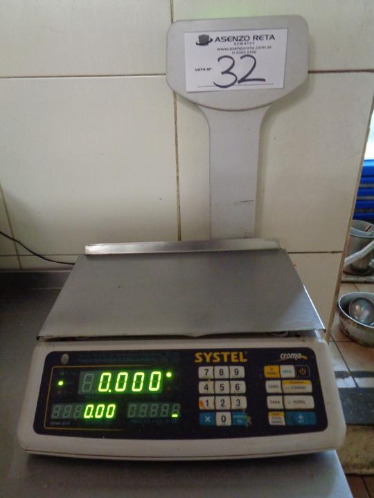 BALANZA DIGITAL MARCA SYSTEL MODELO CROMA 30 V2, CON COMPUTOR/ MASTIL DE PRECIO CAPACIDAD MAXIMA 31 KG (RETIRO POR AV TRUINVIRATO)