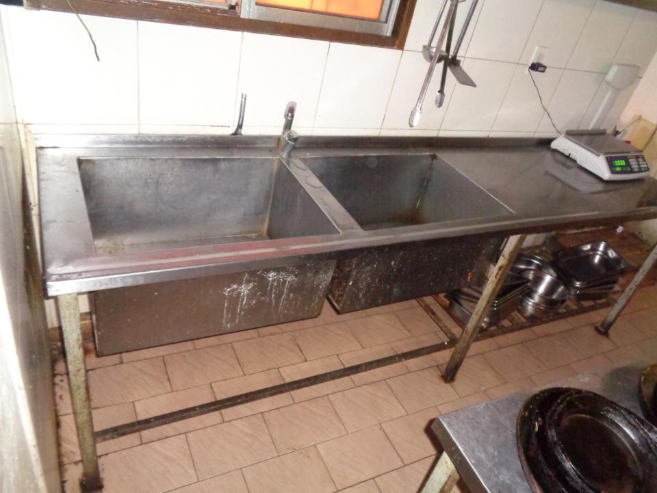 MESADA DE ACERO INOXIDABLE CON BACHON DOBLE, BASE ESTRUCTURAL DE HIERRO, CANILLA MONOCOMANDO, ZOCALO SANITARIO,BORDE ANTIDERRAME, 1 ESTANTE INFERIOR DE CAÑO MEDIDAS 2.80 MTS X 70 CM X 95 CM DE ALTURA (RETIRO POR AV TRUINVIRATO)