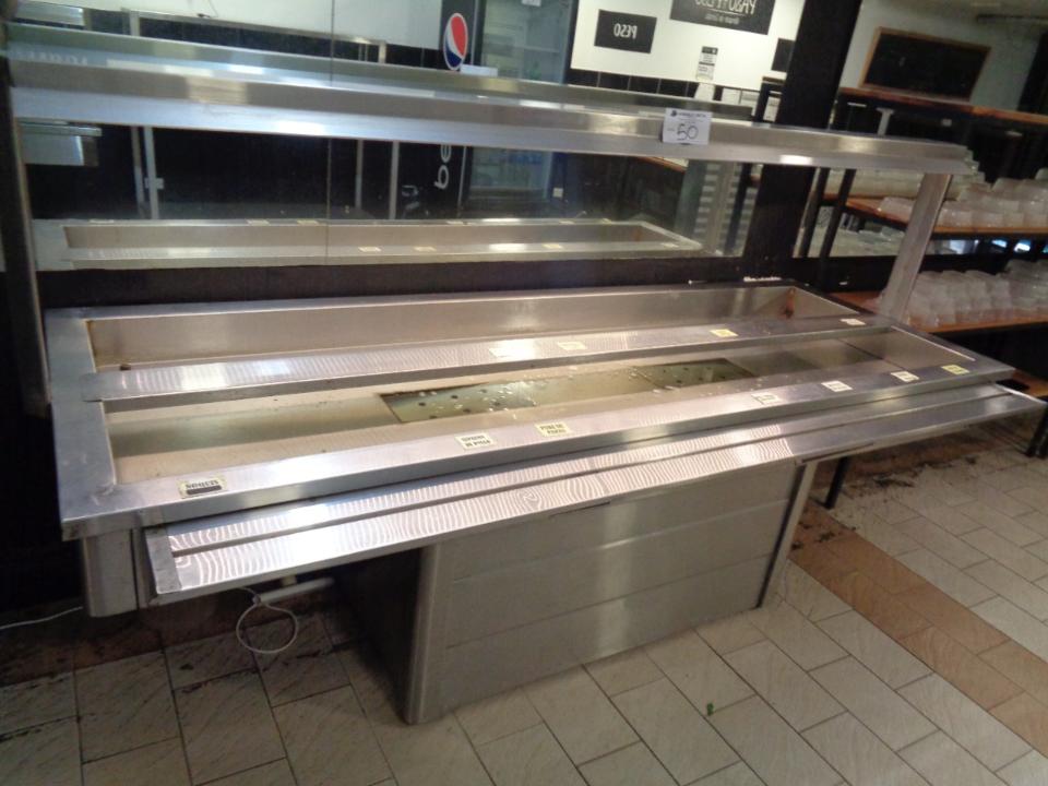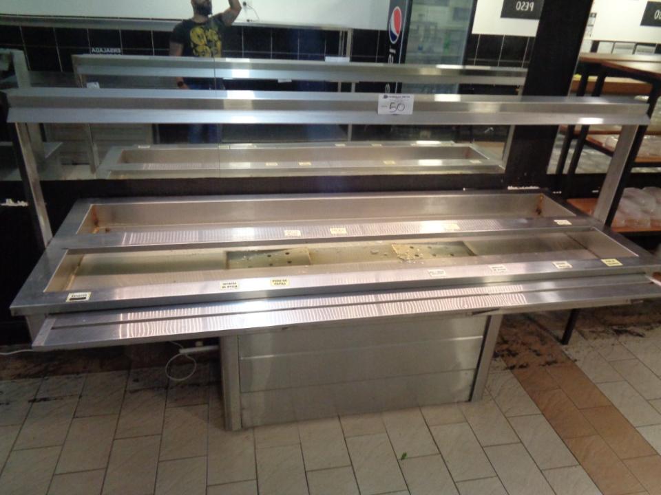 LUNCHONETTE ELECTRICO EN ACERO INOXIDABLE PARA PLATO CALIENTE CON BAÑO DE MARIA, MOTOR INCORPORADO, LUZ LED, ESTANTE PARA BANDEJA, ALZADA EN ACERO MEDIDAS2.50 MTS X 1.10 MTS X 1.40 MTS DE ALTURA (RETIRO POR AV TRUINVIRATO)